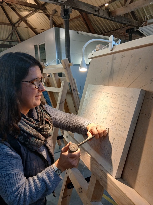 « J’avais déjà une expérience en dorure de lettres, peinture et rechampissage (ravivement de lettres gravées)» précise Cécile.